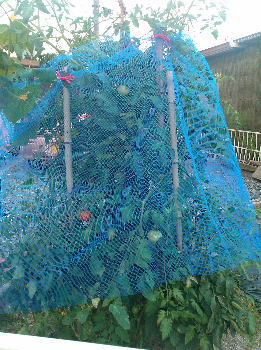 カボチャやトマト達! 今晩のサラダにトマトを使おうって思っていたのに・・・ 夕方、トマトの収穫をしようとしたら!! なーにー(クールポコ)!! 真っ赤に熟れたトマトに鳥のつついたあとが・・・ それも、控えめにツンツンしたのではなく、 グワッ!!といってるし、おまけに、まだ 熟れきってないオレンジのトマトまで、、、 菩薩さま~?耳にはいりません! 速攻で100円ショップでネットを購入 →あわわ。寸足らずで半分しか囲めてない。 でも大丈夫!! ネットと一緒に購入したダミーのカラスが いるから。 フォッフォッフォッ!! これで安心だわ☆ 鳥との戦いに勝利を確信して、爽やかに 目覚めた翌朝♪ ~見事に撃沈~ またもトマトを!! キーッ!!こうなればダミーなカラスの 目玉に派手にペイントしよう。 絵心のなさが武器となり、今度こそ 鳥に恐怖を与えてやるのだ・・・ 鳥との戦いは今、始まった☆ PR |