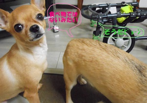 チェルシーが不思議そうに見ている横で 「ヂヂ! 動いちゃダメ! 待て!」 と、ぶつぶつ 言いながらヂヂの写真を 撮影。そして、サイズを計測。 知人から 「テレビで、犬の車椅子の紹介の番組が あって、いろいろな 状態のコにあった 車椅子を作ってもらえる所があるみたいだよ~」 って、教えてもらって、ネットで探して たどりつきました!! 犬の車椅子わんうぉーくさんです☆ ☆急に注文が増えると、皆様に迷惑がかかるので 告知には、あまり力をいれられていないそうです。 オーダーって 高そう!!だし 時間もかかりそう!! そして、チワワサイズって出来るのかしらん ・・・と 思っていましたが、 2輪車・4輪車 サイズも小~大まで対応できるし、 お値段も 目が飛び出る程の金額ではないしで 注文する事にしました。 待ち遠しいね☆ |