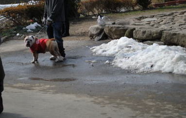 きました。 教室のまわりは、まだ雪がとけてません。 スムースチワワのチェルシーにとっては 寒かったかな? 新入生のブルドッグちゃん! 「一回噛みついたら離さないよ。はっはっはっ。」 先生の言葉に私は凍り付いてしまいましたよ。 その表情に気づいた先生は、 「でもブルドッグは小型犬が苦手なんだよ。」 と教えて下さいました。 何故に?と疑問をもったけど そこはいい加減な私。先生がそうおっしゃるなら そう信じましょう! 凍り付いた私の心をグーンと 暖めてくれたのが、ジョッキーママことけいたんから 手作りワンコマフラーをプレゼントされた事!! ボンボンが可愛いでしょ! 販売してても不思議じゃない。っていう位編目とか完璧なのですよ。 けいたん素敵なプレゼントありがとう。大切にします。 嬉しさのあまり あこがれの ひょっとこ巻き にも挑戦してみました!! PR |