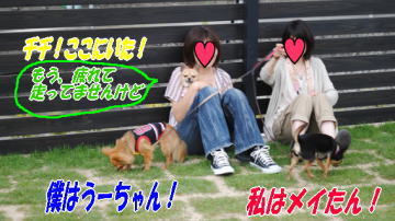 しつけ教室卒業祝いランチの報告です!! パチパチ! それでは、頭の中でビートルズのイマジンを流しながら~ ♪想像してごらん ママ達が堪能したレストラン「花陰」での おいしかったランチを♪ 食べる事に夢中でランチの画像がない!!ので ヒントの画像はピーママさんのところで・・・ ♪想像してごらん 久しぶりにみんなとドッグランで 走りまわって大満足のヂヂの表情を♪ ヒントの画像はわん君のところまで! ♪想像してごらん 本日、卒業祝いをしてもらった うーちゃん・メイたん・チェルシーのうちチェルシーも この場に参加していたら、どんなに喜んでいたかを♪ ♪そして~貴重な写真を撮り損ねた私に、疑問を投げかける 夫への言い訳を~♪ PR |