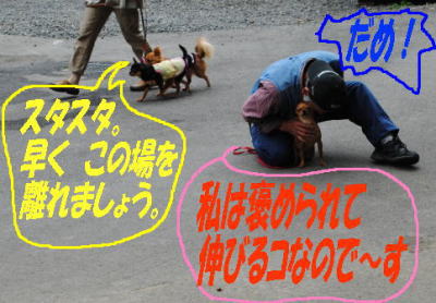 せっかくの2ショットなのに いつもチェルシーは緊張してます。 ノーリードの成功は先生の時だけ・・・ 卒業したワンコ飼主さんの中には先生の 声を録音して悪さを止めたりする人も いるとか・・・ すずちゃんぐみ君もすばしっこそうだから 逃走されたらつかまえるのは大変そう(笑) 【2011/05/2412:28】||チェルママ#55643902c7[ EDIT ]
