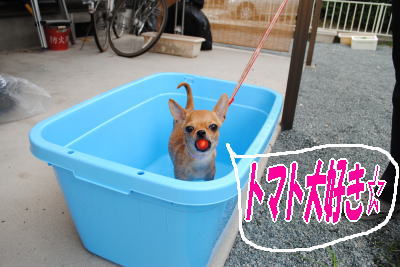 なーにー(クールポコ)!に古っ!! っと突っ込んじゃった(笑) 今年もたらいのプール大活躍してるみたいね。 チェルシーちゃん、トマトを口いっぱい頬張って可愛い♪ ダミーなカラスの目玉にペイントしたら、写真見せて。 爆笑の予感・・・ ![]() チェルママさん、壊れた~~~