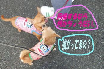 おともだち、はっち堂さんへ チェルシー・ヂヂの洋服を注文 していたところ、昨日商品が 届きました!! とってもかわいいです~ すずちゃんの服とおそろいの 舌ペロンのチワワのアップリケもついてるし~ ヂヂの服も幼稚園児みたいでキュート☆ チェルシー・ヂヂの大好きなボンボンも ついてるよ~ ヂヂも満足げに舌ペロリ♪ ヂヂだけでしょうか?? ヂヂはチェルシーの着ている服によって、 ケンカを全くうらなかったりするんです。 それは服の形ではなく色に深く関係して いるのではないかと、色々試した結果 わかったのです。 チェルシーが紅白の服を着ている時、 2ワンのケンカは、え~って位 なくなるのです。フシギ。 なので、今回も紅白を基調にした服を はっち堂さんにお願いし快く作成して もらえて、ありがたかったです。 この新しい服を着ても、ケンカは起こらず、 ほっとしてます☆平和。 次回はドット柄がいいなって、今から 気持ちが盛り上がってます。 |
