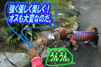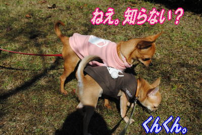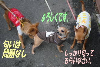 様々な技を習得しました! ・・・と報告したいところですが、前回の教室から 間もあいたという事もあり、今回も一進一退の チェルシー。 他のワンちゃんとの距離が段々と縮まってきてる 事が今回の収穫!かな。 そして今回、後からパパとやってきたヂヂが先輩 ワンちゃん達と良い感じだったのが大きな収穫! 普段は姉のチェルシーとばかりだから、お兄ちゃん ワンコ達に触れ合えて良かったね。 まずは、チワワ先輩犬のうーちゃんに犬のご挨拶。 ヂヂがうーちゃんにちょっかいを出しても、うーちゃん は、大人の対応!1年後はヂヂもうーちゃんのように 落ち着いた対応ができるといいね。 そして、3歳のお誕生日をむかえたばかりの ジョッキーちゃん。 やっぱりヂヂはジョッキーちゃんにも遊んでの アピールでちょっかい。あまりの幼さにジョッキー ちゃんも怒らず騒がずの対応! 先輩ワンコちゃん達にオスとしての心得も 教わり、少したくましくなったヂヂ。 |