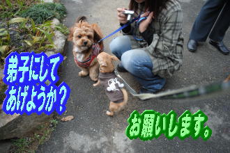 小学生の女の子の事を 考えてた。 それは、姉チェルシーが しつけ教室に行っている 間の出来事であった。 まあ、留守番しているヂヂを 散歩にでも連れてこかっと 考えた父ちゃんが、ヂヂを 外へ連れ出した。 そこへ、小学生の女の子 3名の中のひとりが勇気を 出して、(見た目の恐ろしい) 父ちゃんへ「子犬を抱かせて もらえませんか?」と申し出た。 ヂヂなくしてはこんな状況は 考えられない嬉しい申し出に 父ちゃんはヂヂを差し出した。 ヨシヨシっとなでられるヂヂ! 女の子の手はとてもやわらかく あたたかかったワン。 っと思い出してるヂヂ。 女の子ってチェルシーみたいに おてんばばかりではないワン。 また、ヨシヨシってされたいワン。 「ヂヂごはんですよ!」 ・・・・・・。 |