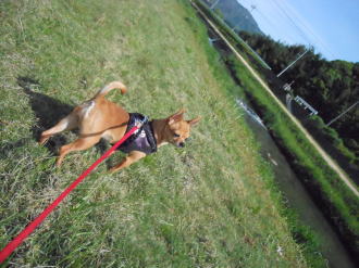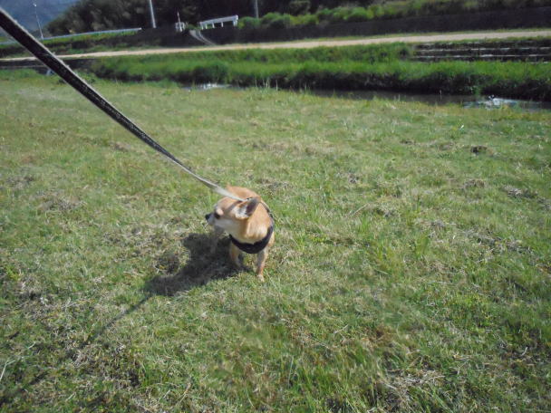 まずは、時間。 朝、早すぎると、河原の草が濡れており、 昼間は、日差しが強く、ばててしまう。 夕方は、他のワンちゃんも散歩中で、 我が家の2ワンがギャンギャンとご迷惑をかけてしまう。 AM9時☆この時間がベスト 前回は10時前だったので、釣りをしているおじいさんに 2ワンが大騒ぎ。 今回は9時 見渡す限り、人もワンちゃんもおりません。 まずは、周囲とにおいのチェックにはげむチェルシーとヂヂ 右OK! 左OK!! この石渡りは、お転婆チェルシーも苦手。 2ワンを抱いて、落とさないように、 自分も落ちないように、、、 水辺の水をチョロっと味見して、満足なチェルシー。 ヂヂは水辺へ近づこうとしません。 ちょっと怖いんだね。 |